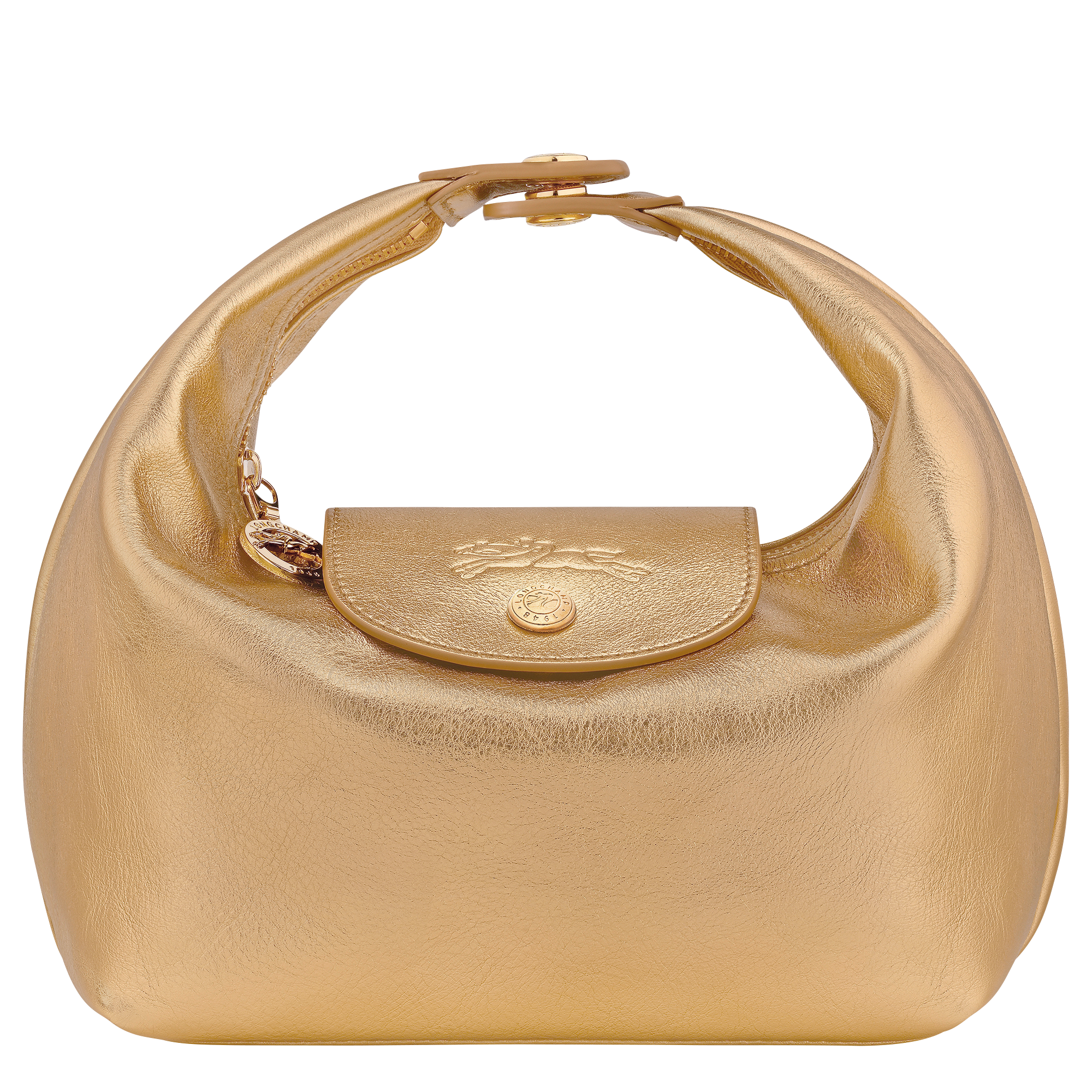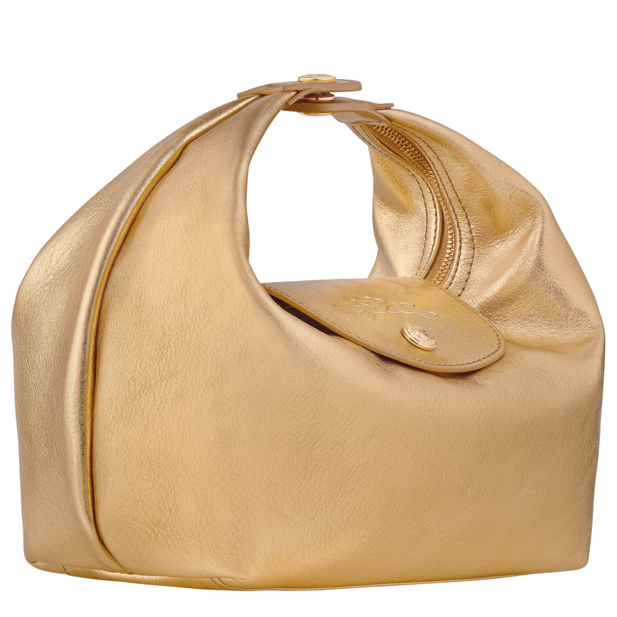 Le Pliage Xtra gets a glamorous upgrade this season with a sleek evening edition in metallic gold calfskin leather. Compact and eye-catching, it features both zip and snap closures, gold-tone hardware, and an interior credit card slot for just the essentials. With its shimmering finish and bold holiday vibe, it’s the perfect go-to bag for festive nights out.
