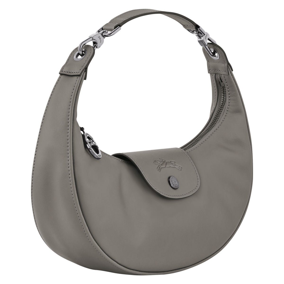 This half-moon bag adapts to your needs with its removable handle, allowing you to add a long shoulder strap to wear it crossbody or over the shoulder. Its rounded shape gives it a soft yet dynamic look, while the interior comfortably accommodates all your daily essentials.