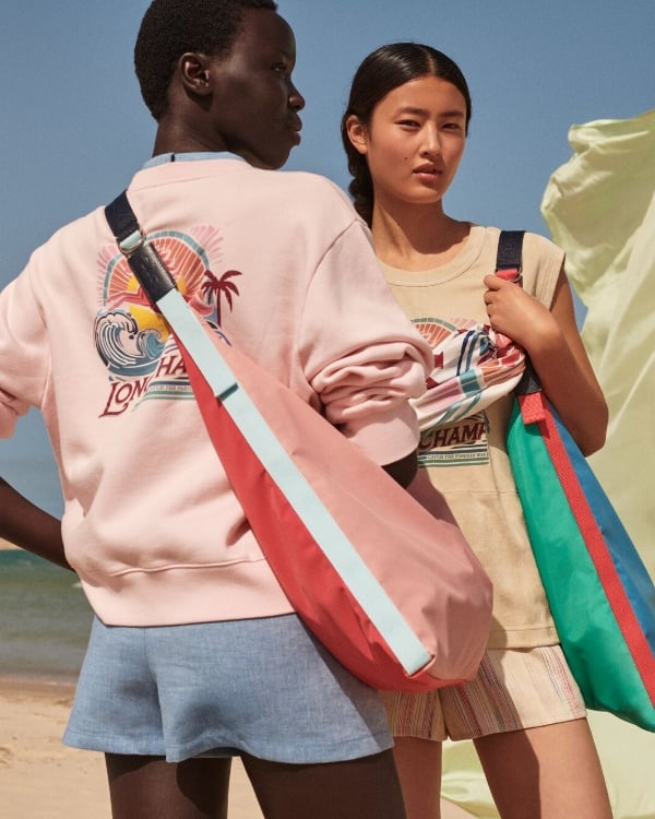 Discover Longchamp’s latest creations, featuring sun-washed colors, natural textures, and surf-inspired details.